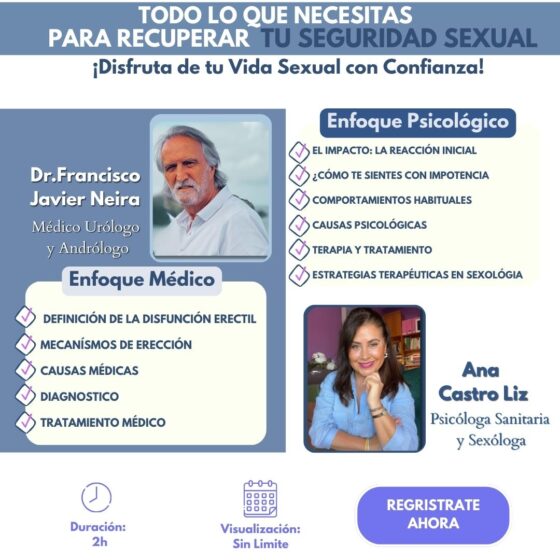 Este taller ha sido creado por dos profesionales sanitarios (Médico Urólogo y Sexóloga) para que puedas recuperar la confianza en tu vida sexual.