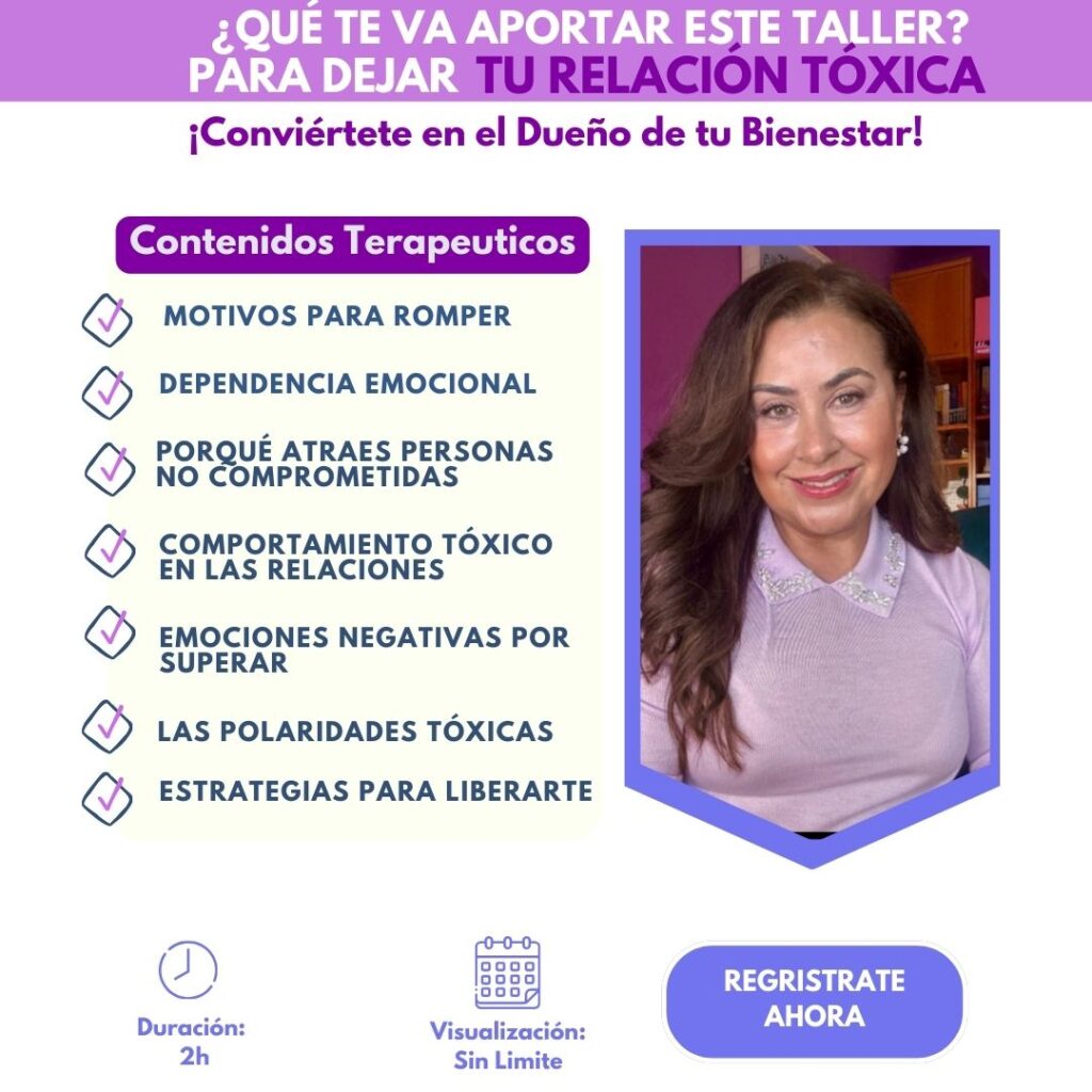 Este taller te ayudará a liberarte de relaciones dañinas, fortalecer tu autoestima y poder tomar decisiones con calma y seguridad personal.